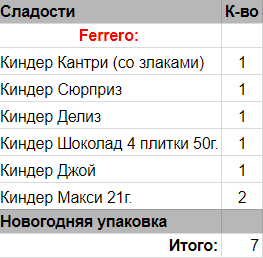 Кол-во сладостей: 7 шт.