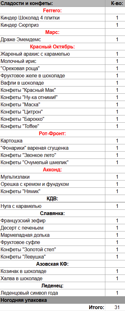 Бабаевские конфеты на Новый Год в Скоропусковому