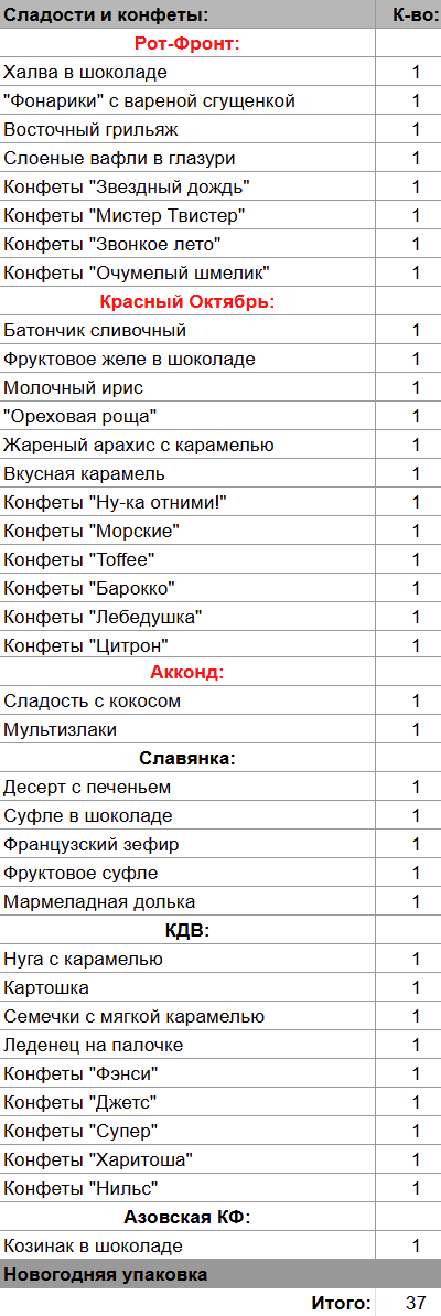 Кол-во сладостей: 37 шт.
