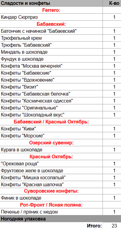 Бабаевские конфеты на Новый Год в Скоропусковому