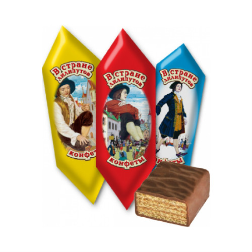 Вафельные конфеты В стране лилипутов производства фабрики Славянка можно купить оптом с доставкой по Москве, Подмосковью и ЦФО. Низкая цена обусловлена отсутствием посредников при наличии прямого договора с производителем.  Все актуальные сертификаты в наличии. Минимальный заказ: 1 коробка